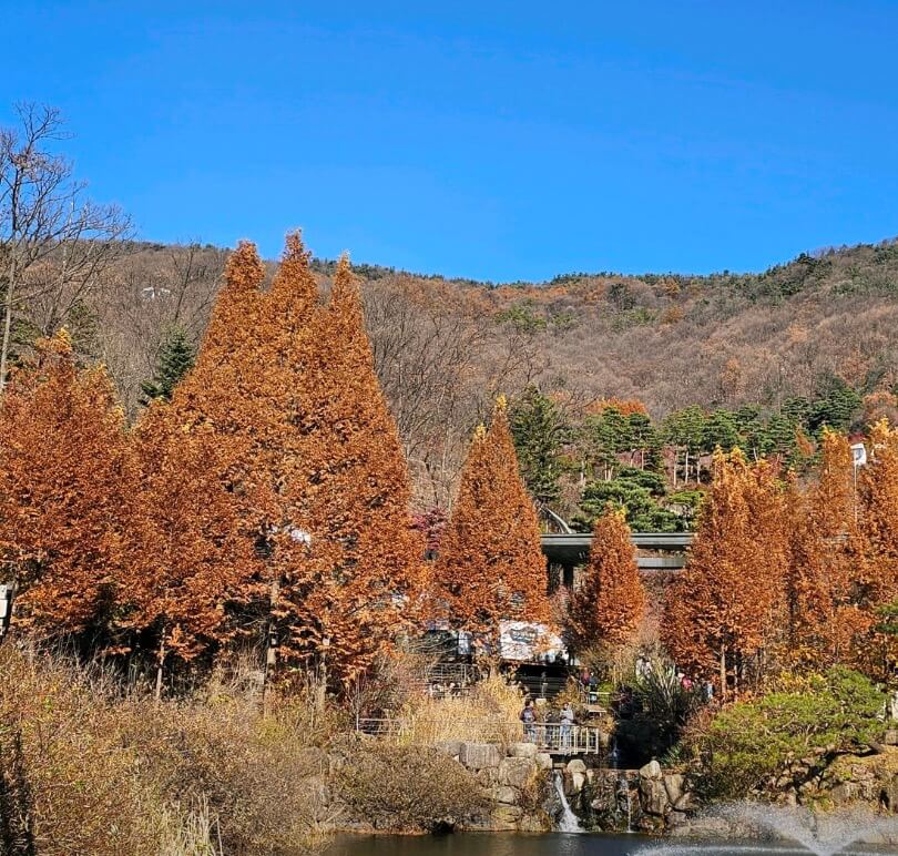 10월 말부터 11월 중순까지 단풍이 절정에 달하며, 메타세쿼이아길과 단풍나무원에서 압도적인 가을 정취를 느낄 수 있습니다. 오후 2시경 역광으로 찍는 단풍 사진이 가장 아름답습니다.